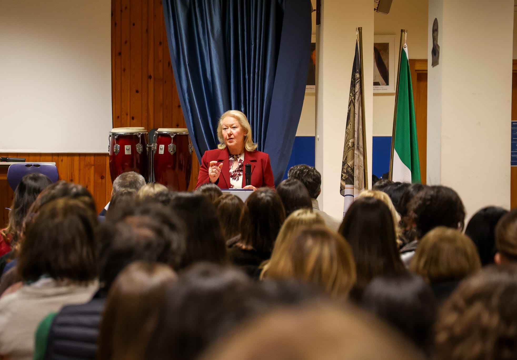 Το εκπαιδευτήριο Μary Mount, παράλληλα, τίμησε την χθεσινή ημέρα με εκδήλωση κατά στην οποία το μήνυμα της Αντιγόνης, όπως και η φιλοσοφία του Πλάτωνα, συνδέθηκαν με την στέρηση ελευθερίας στην σημερινή εποχή και με τις προκλήσεις της τεχνητής νοημοσύνης. Στον χαιρετισμό της, η πρέσβης μας στην Ιταλία, Ελένη Σουρανή, παρότρυνε τους μαθητές να ανακαλύψουν τις ελληνικές ρίζες αγγλικών και ιταλικών λέξεων, όπως και την διαχρονική σημασία τους.